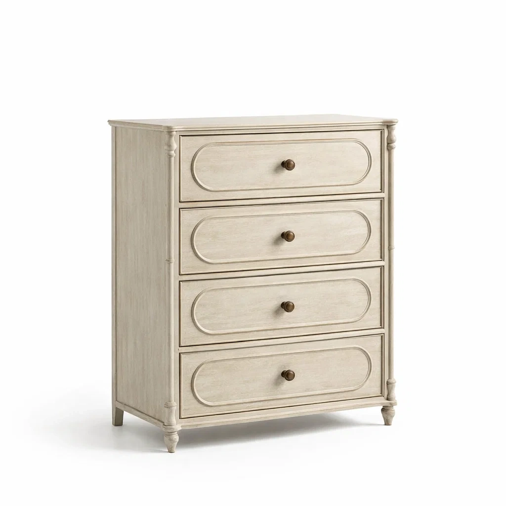Cassettiera in legno massello bianco crema con 4 cassetti 76x45x111 cm