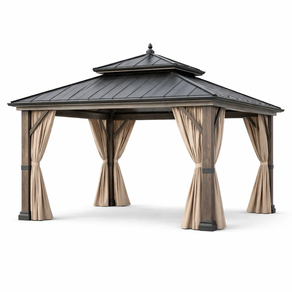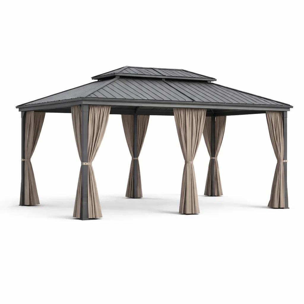 Gazebo in alluminio con tetto in metallo e tende laterali grigio