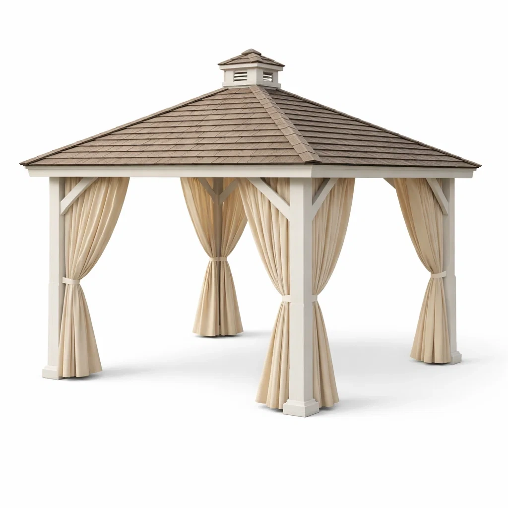 Gazebo quadrato in legno e poliestere beige 300x300 cm