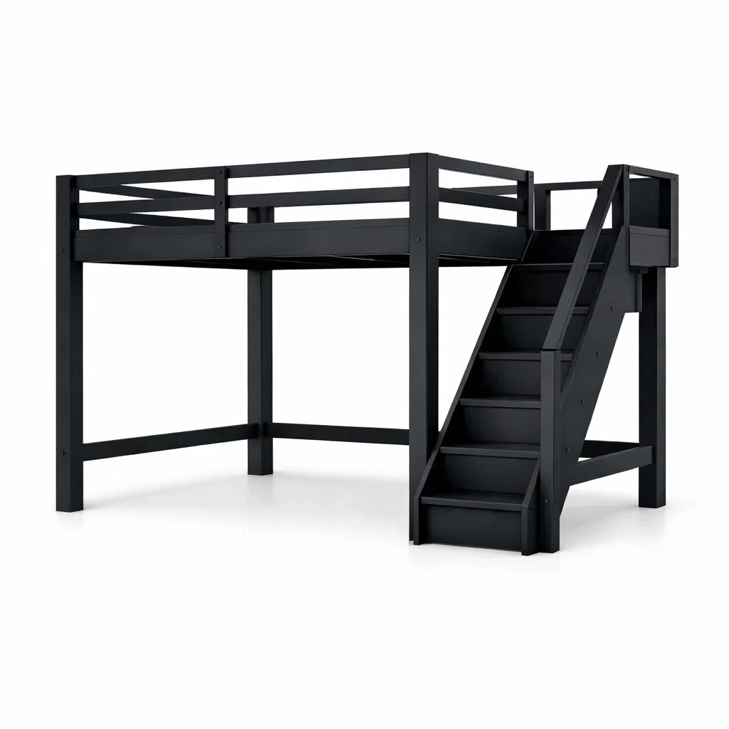 Letto a soppalco in legno nero con scala integrata