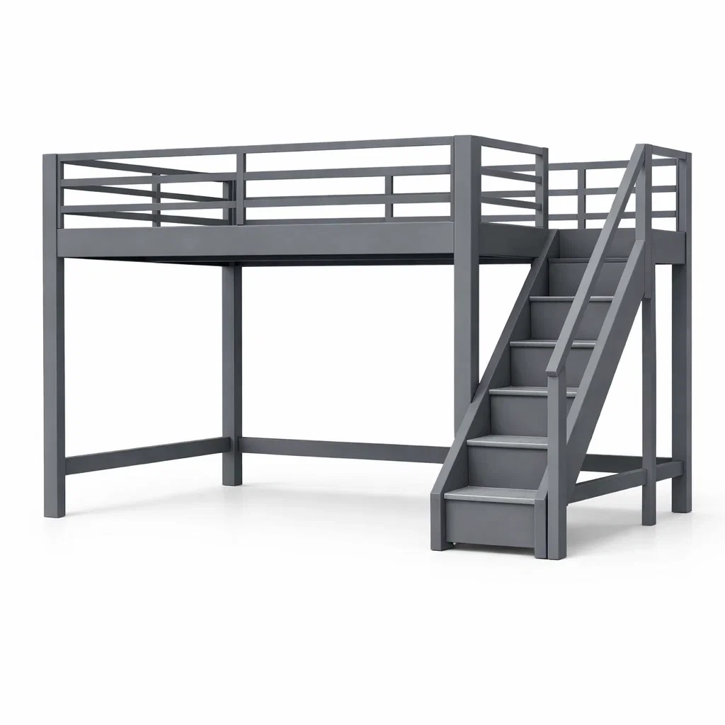 Letto a soppalco in legno grigio con scala