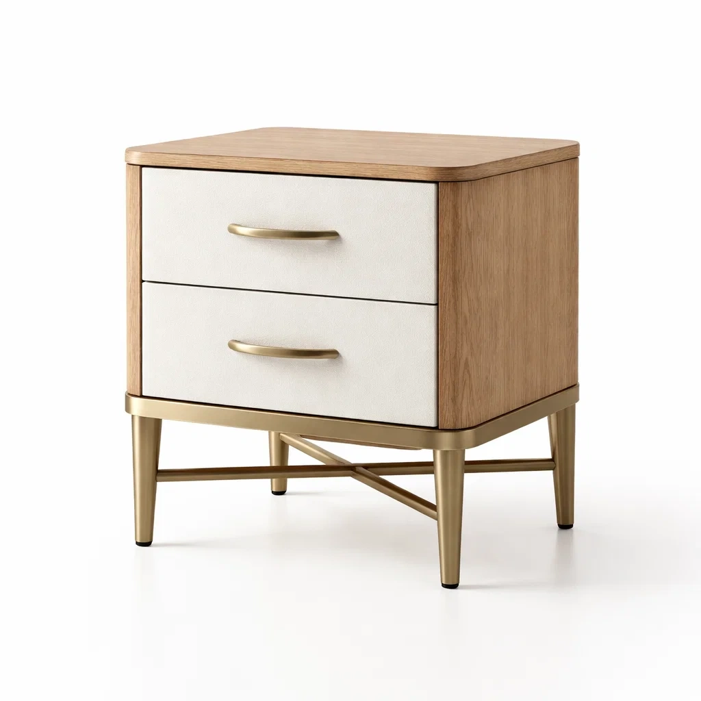 Comodino in legno e metallo colore dorato con 2 cassetti