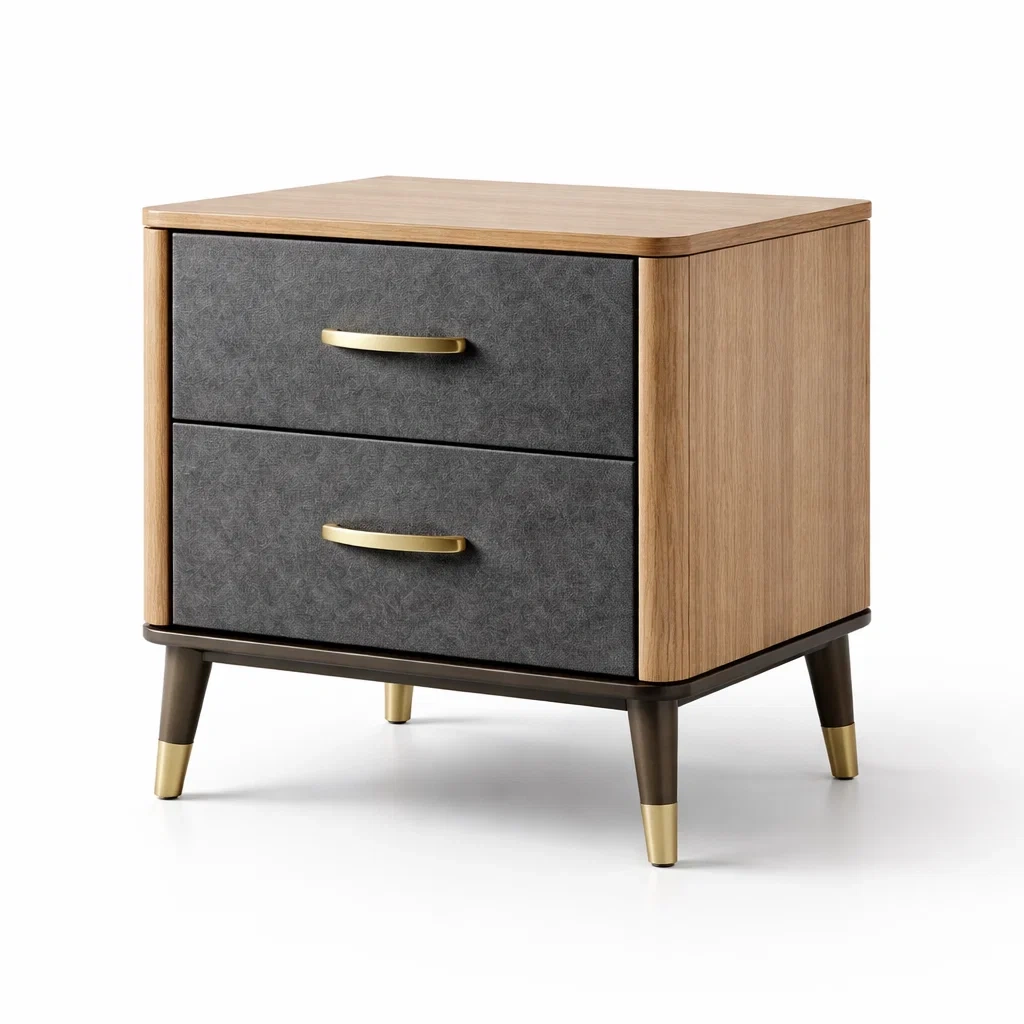 Materiale del prodotto: Struttura in legno con frontali cassetti in tessuto grigio